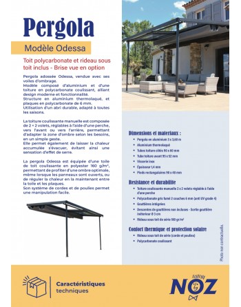 PERGOLA ODESSA ADOSSEE EN ALUMINIUM ANTHRACITE 3x3.60 M